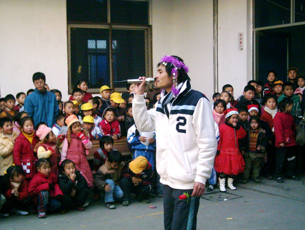 青年志愿者为民工子弟表演节目