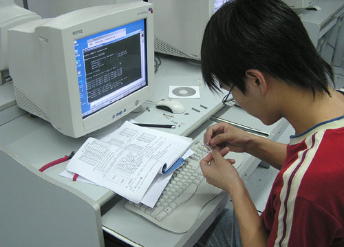 比赛选手在网络接线