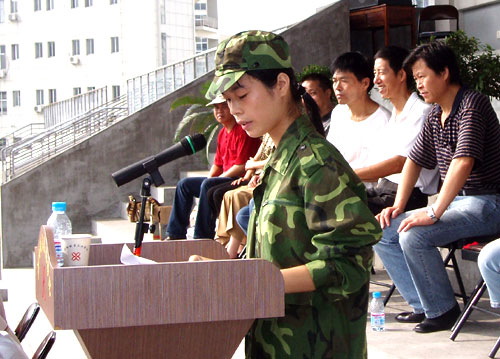 2005级工商系新生一等奖学金获得者余淑秋同学作为新生代表发言
