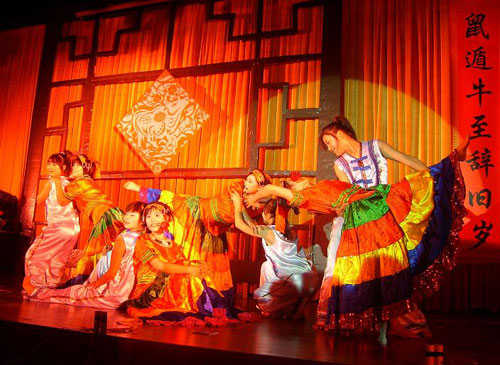 该系主任李洁、党总支部副书记叶吉波与财会系全体教师、学生一同辞旧迎新。活力四射的开场舞《We are super men》,音乐串烧《OP西游》立刻使在场的观众热情高涨;小品《唐伯虎点秋香》,音乐剧《上海滩》,情景剧《心语一路旅程》不时博得同学的笑声和赞许声。晚会现场不时地高潮迭起,美声独唱《祖国慈祥的母亲》、《恋舞彝山》以高难度的唱功赢得一片掌声与喝彩。朗诵《爱在2008》则让演员与观众一同回顾了2008年发生在中国大地上发生一件件感动的事——2月雪灾的风雨无阻、5月地震的生死不离、8月奥运的激情自豪。老师们也从讲台走向了舞台,赵海鹰老师带来的一曲《青藏高原》让大学生们也刮目相看,看到老师们多彩多艺的另一面。