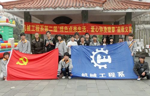 云南省德宏傣族景颇族自治州盈江县于3月10日发生5.8级地震,之后连续发生3次余震,导致多数房屋倒塌、多人死伤。当机械系志愿者们得知这一消息,大家毅然伸出援助之手,用义卖这种特殊的方式向地震灾区捐款献爱心。义卖活动得到了社区居民们的大力支持,大家纷纷购买盆栽,为盈江震区同胞献出爱心并在现场留下祝福。