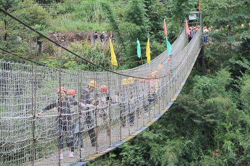本次活动地点是在风景秀丽的九鲤溪峡谷运动乐园,在长约2公里的峡谷里设有携手并进、高空溜索、凌空漫步等十多个激发个人潜能、锤炼意志品质、熔炼团队精神的经典户外运动体验项目。