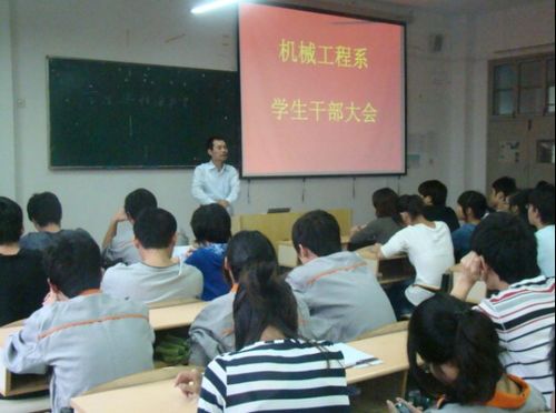 2010年10月20日下午,机械工程系在实训3号楼414召开学生干部大会,大会由系党总支书记黄加銮主持。系学工办老师以及各班班长、团支书、学习委员,系团学组织干部参加了此次会议。