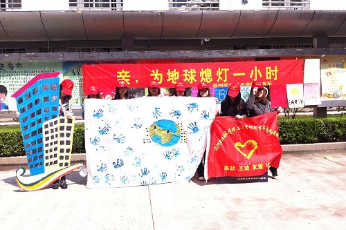 “地球一小时”是WWF世界自然基金会为应对全球气候变化所发起的一项可持续性的全球活动,号召个人、社区、企业和城市在每年3月最后一个星期六 20:30-21:30熄灯1小时。2012年3月31日为一年一度的“地球一小时”日 ,工商系“绿色守护者”志愿者服务队开展了以“亲,为地球熄灯一小时”为主题的低碳环保宣传活动。