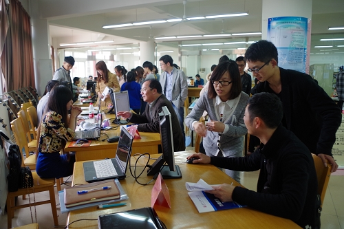 4月10日下午,计算机系在图书馆信息楼二楼大厅举办了2013届学生毕业作品“做、展、评”暨人才招聘会活动。院党委书记陈光天、副院长王向红、副院长王志梅、院职能部门负责人等领导亲临现场指导,计算机系全体师生参加了此次活动。