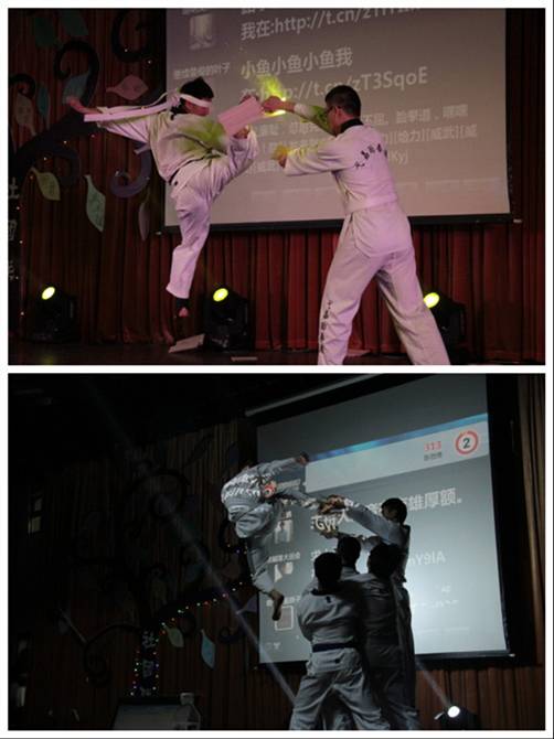 各社团采用讲解加特色展示的形式,在舞台上一展社团风采。街舞协会的《最最西游》,将名著《西游记》的情节与现代舞蹈的时尚气息融合在一起,创造出了独具社团风格的突破演绎。成立不久的军体社第一次登上评选晚会,所展示的军体拳同样博得喝彩。跆拳道的表演依旧让观众叹服,欢呼尖叫声连连,让晚会的气氛达到一个高潮。由吉他协会带来的《父亲》,通过吉他的弹拨与歌手深情的演唱,诠释出父爱如山的伟大……