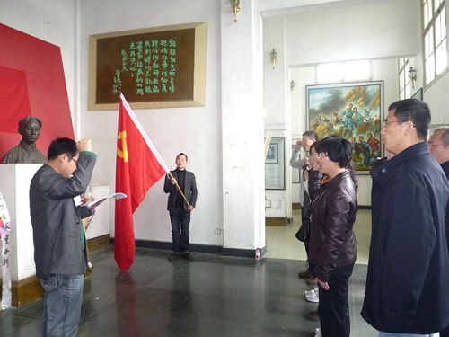 在刘英纪念馆里,各位党员教师认真地浏览了馆内陈列的图片、旧物、题字等革命遗物,深深地为刘英烈士的不畏强敌、不怕牺牲、英勇抗敌的精神和坚定的共产主义信念、卓越的领导才能所感动。党员教师听取了老党员对刘英同志革命事迹和文成县革命斗争史的介绍,向刘英同志纪念碑敬献花篮,并在党旗下重温入党誓词。