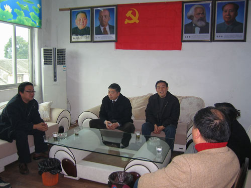 纪定峰同志到村后,首先实地调研走访,向办事处领导和村两委干部和群众了解村情。熟悉所驻村的经济、计生工作、社会治安以及基本情况。该村160户633人200余亩耕地,没有村集体企业和收入。第一天实地考察,给他的初步印象是村里是一潭死水(池塘),二棵大树,散散落落的几十户旧房和一条坑洼不平的在建村庄道路。实际是萧江落后的村。对村的基本情况有了初步的了解后,他结合村实际,与村“两委”干部多次交谈,走村窜户,了解民意,确定了工作目标。重点抓好康庄道路和村办公楼的建设,热点是镇工业用地的征用;进一步抓好村务公开的制度建设和基层党的组织建设,改善文化设施和村庄卫生环境,争取村庄规划。