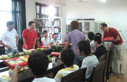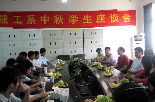 在中秋佳节来临之际,我院建工系在该系会议室召开了中秋茶话会,系领导与13名来自福建、安徽的外省籍学生一起座谈。系主任薛朝晖、系党总支书记李达聪亲自为学生们送上了月饼,表达了学校对外省籍学生的关爱和祝福。