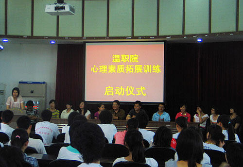 5月7日下午,温职院首届“大学生心理素质拓展训练”的启动仪式在行政楼多功能厅举行。此次拓展训练是我院第六届大学生心理健康教育月系列活动之一,旨在激发学生潜能和创新意识、磨练其意志和毅力,让大学生们在群体交流、团队协作中学习、成长,并且在互相尊重、信任和帮助下发展友谊。学工部部长季凌斌到场致辞。各系心理委员和心理协会会员100多人参加了启动仪式,并在心理健康教育中心老师赵生玉的带领下在大学城学子广场开展心理素质拓展训练活动。
