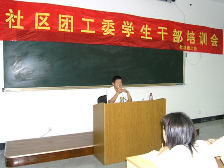 为了加强我院学生干部的思想意识,提高学生干部在活动中的服务质量,2004年10月20日晚,由社区团工委主办的干部培训会在我院4号楼205召开。