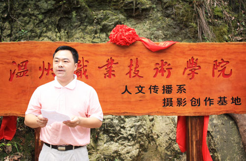 6月30日,温州职业技术学院人文传播系在乐清黄檀硐古村落隆重举行该系摄影创作基地的成立揭牌仪式。乐清市城北乡郑巨化书记、人文传播系郑国波书记、传媒专业摄影艺术指导叶君奋老师以及黄坦洞村书记和主任等领导出席了本次仪式。。