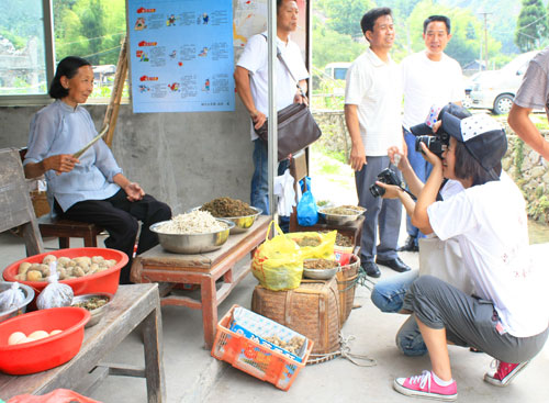 传媒专业学生为村民拍照