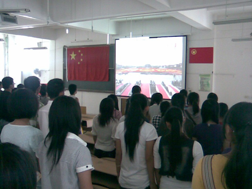本次活动更得到了学院的大力支持和关注。全院外省留校学生在十一当日满怀激情和热情来到1号教学楼201教室,带着对祖国母亲的热爱之情,踊跃观看了阅兵仪式。一双双真挚的眼睛,一个个甜美的微笑,一次次热烈的掌声,都源于同学们对祖国深深的爱。