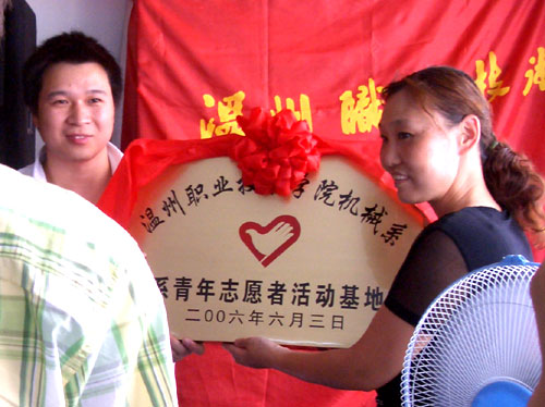 6月3日上午,我院机械系在温州市鹿城区鼓楼社区举行“青年志愿者服务基地”挂牌仪式,成立志愿者服务基地。这是该系成立的第三个青年志愿者服务基地。