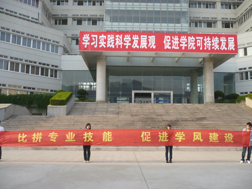 中午,在1号楼101教室,财会系主任李洁发表了讲话:“做为财会系的一位成员,在你们身上我希望看到会计的素质,你们应该有着良好的职业精神和技能,并将这种良好地素质风貌继续保持下去,现在作为大一新生应该尽快树立目标,在学校好好掌握知识和技能,将来在社会上,让你们的老板看到从温州职业技术学院财会系出来的学子是好样的,要谨记一句话,现在正是你们创造资本的时候。”简单的几句话让在座的学子们心潮澎湃。接着,技能展示活动正式启动,数码字、手工登账、点钞、珠算等展示人员依次排开就座,分别开始进行手头上的工作。大一新生以班级为单位有序地进行了参观,当他们看到自己刚发到手的算盘、假钞还并不太熟悉的时候,大二大三的学姐、学长们却已经这么运用自如了,不禁感慨,随即就在活动期中对自己非常感兴趣或是不太熟的技能特别进行了询问,表现出极高的积极性。对此,活动期间工作人员进行了有关的问卷调查,绝大多数同学认为该项活动十分有意义,它极大的增强了同学们对会计学科的热情,并希望以后能多举办一些类似的专业性活动。近两个多小时后,活动圆满结束了,同学们纷纷在活动的横幅上签下了自己的名字。