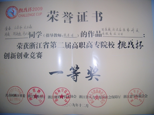 历时6个月之久的由共青团浙江省委员会、浙江省教育厅、浙江省科学技术协会、浙江省人力资源和社会保障厅、浙江省学生联合会共同发起主办的浙江省第二届高职高专院校“挑战杯”创新创业竞赛于2009年12月11日至13日在杭举行决赛并落下帷幕,我院电气电子工程系选送的由张芳芳老师指导的《国基数控设备维修科技有限公司》创业计划项目荣获一等奖,由张芳芳老师指导的《飞源新型恒压供水设备有限公司》创业计划项目荣获二等奖,由林声雷、晁拥军、张芳芳老师指导的《来电语音呼叫电话附加机》产品创意设计项目荣获三等奖,实现了该系在浙江省高职高专院校“挑战杯”创新创业竞赛上的零的突破。
