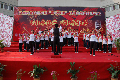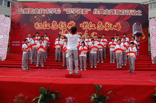 5月26日下午,由院团委主办,工商系团学组织承办的“说学读唱”主题教育活动之“忆红色经典•唱红色歌曲”大合唱比赛在院信息楼前如期举行。