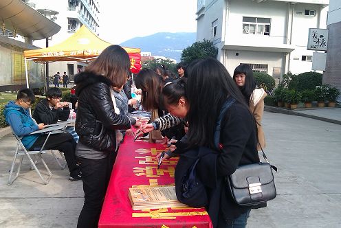 随着信息技术的不断发展、网络的普及,电脑在人们生活中所起的作用越来越大。然而在科技带来便利的同时,许多青少年沉迷网络的现象也越来越普遍。“网络成瘾”这一不容忽视的社会问题正引起学校、家长、社会各方的普遍关注。为了引导大学生正确使用网络,拒绝网络沉迷现象。 12月12日下午1点,计算机系党服中心在生活区一号餐厅对面进行主题为“珍惜大学时光,杜绝网络沉迷”现场签名承诺活动。