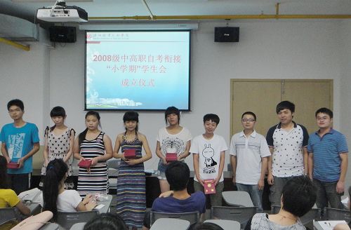 7月28日下午,成教学院在学生活动中心212会议室举行了2008级中高职自考衔接“小学期”学生会成立仪式。成教学院副院长欧阳翰夫出席了会议。会议由学工办主任刘海明主持。