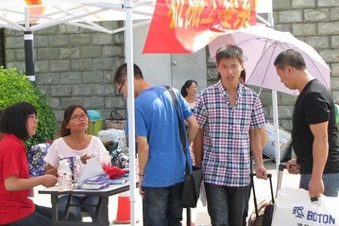 机械系大二大三的同学们为迎接新生,忙碌地穿梭在大门、工业中心、宿舍楼和生活区的各个角落。统一的鲜红色着装让机械系志愿者在整个迎新团队中格外抢眼,一眼就能在人群中寻找到他们的身影。从门口引路、手续办理到宿舍入住,机械系的志愿者们有条不紊的带领着新生去办理。炎炎热日,志愿者们满头大汗但却依然笑容满面,“学弟学妹的满意就是我们最好的动力,一声声的学哥学姐,我们再苦再累都愿意。”一位志愿者同学擦着汗微笑着说。