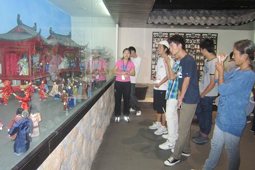 伴随着博物馆讲解员的讲解,同学们了解到了一代代温州人在这块土地上创造并传承这的别具一格的温州民俗文化。在一件件展品和一幅幅老照片前同学们不时停下脚步仔细观看。在颊缬、米塑展示窗口,很多同学都是第一次看到极具温州民间特色的传统技艺;在浙南民居仿古建筑前,大家了解到传统瓯越建筑的独特魅力;民俗博物馆中还为同学们展示了温州传统刺绣——瓯绣的不同绣法以及每个绣法的不同特点。每位参观的同学都受益匪浅,本来一脸茫然的神情在解说员的讲解中豁然开朗。