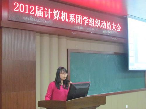 为了提高计算机系所有团学成员的凝聚力,调动大一新干事对团学组织工作的热情,计算机系于11月21日下午在2号教学楼101教室召开了2012届计算机系团学组织动员大会。 出席大会的嘉宾有罗小阳老师、徐莎老师、李文静老师、黄立强老师和2011届的团总支副书记罗永潮学长。