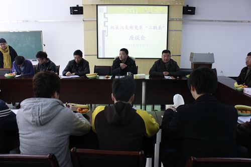 12月31日,机关第六支部在招聘大厅举行“党员三联系”座谈会活动。机关第六支部三联系对象为计算机系的10个班级、10个寝室和10位毕业生。支部全体党员以及计算机系电子商务1002班李晓阳等11位学生代表出席了活动。计算机系童炳金书记、学工办罗小阳老师应邀列席。座谈会由支部书记金建孟老师主持。