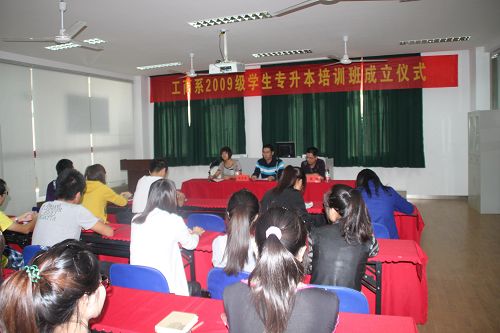 10月26日,在4号实训楼504教室,工商管理系举行了“专升本培训班”开班仪式。学生工作办公室林香港、黄伟等两位老师应邀参加开班仪式,并分别被聘任为该班级指导老师和班主任。