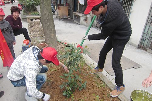 入党积极分子、志愿者到达社区后就拿出铲子给树苗铲一块足以栖息的小地,有的还提着重重的铁桶给快枯萎的小树浇水,有的为刚种上的树苗挂上了电气系自制的标语,大家热情激昂,积极地响应了“种一颗小树,绿一方净土”这一主题。此外电气系入党积极分子、志愿者还为社区居民开展免费家电维修活动。维修小组在小区的花园中形成自己的小维修区,吸引了居民们到来。一下午为社区居民免费维修电饭煲、电吹风、电热水壶等小家电20余件,受到社区居民的热烈欢迎。