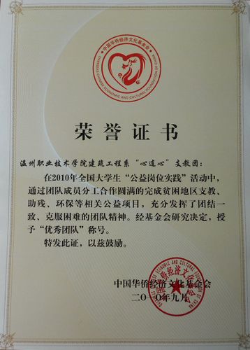 近日,从中国华侨经济文化基金会传来喜讯,由我院建筑工程系包邦胜、芦丹丹老师指导,钟卓聪、乐周磊等同学策划的建筑工程系“心连心”暑期支教团,在此次全国大学生“公益岗位实践”活动中获得全国优秀团队称号,钟卓聪、乐周磊等七名同学获得“优秀志愿者”称号。