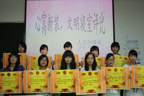 近期,人文传播系在实训一号楼405教室举行了以“新窝新装,文明寝室”为主题的寝室美化评比活动的颁奖典礼。系辅导员、团学下设组织宿管会成员以及各获奖寝室的寝室长参加了本次颁奖典礼。