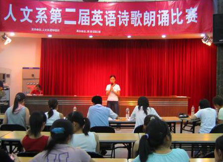 为在浓郁校园英语文化氛围,人文系团学组织于5月27日在行政楼多功能厅举行了“第二届英语诗歌朗诵比赛”。