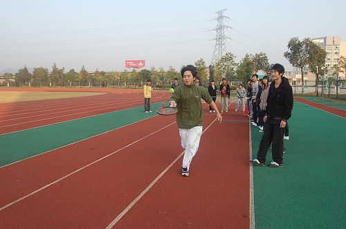 为更好地推进“三早一晚”活动,丰富学生校园文化生活,切实推进学风建设,促进学生身心健康和谐发展,弘扬积极进取、顽强拼搏的精神,2010年12月6日7时许,由共青团温州职业技术学院委员会、公共教学部主办,院学生会与各系团学组织承办的2010年“校园吉尼斯” (体育竞技区)启动仪式在操场健身区举行。学工部部长、学生处处长蔡后界,公共教学部主任、党总书记赵岳峰出席并致辞。参加启动仪式的还有院团委副书记吴冰及各系辅导员代表。