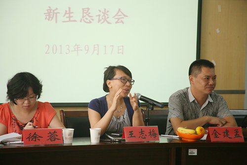 会上,王志梅副院长对各位新生考取我院表示由衷地祝贺,她着重介绍了学院的发展历程、特色以及2013年学院招生就业情况,并希望新生代表围绕:为什么选择我们学院;通过什么途径了解到学院;对学院招生宣传有哪些意见建议以及在校三年最期盼获得什么等问题展开讨论,畅所欲言。