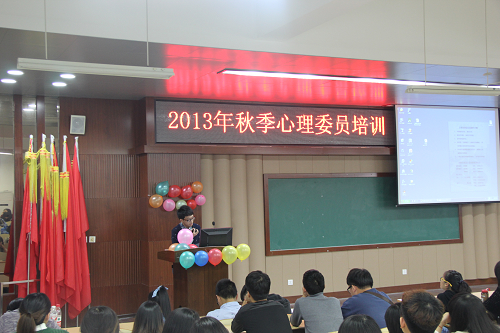 为加强我院大学生的心理健康意识,提高其自我调适能力,促进大学生心理健康工作的开展,11月6日下午,由我院心理发展委员会举办的“班级心理委员培训”第一场培训课程在好学楼101室正式举行,此次培训由学院心理健康教育中心赵生玉老师担任主讲,全体大一大二班级心理委员200余人参加。