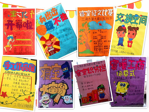 工商系第九届公寓文化节从11月21日到12月18日,历时近一个月,以“我们‘宅’一起”为主题,围绕建设文明寝室,活跃校园文化为目标,开展了“三人篮球赛 ”“征文比赛”“手工作品展”“交换空间”“安全知识专题讲座”“合格寝室大评比”等一系列形式多样、新颖独特的主题活动,增强寝室同学之间的凝聚力,促进各寝室之间同学们的相互交流,让同学们切实感到家的温暖。