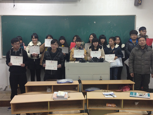12月30日晚上,机械工程系在敏行楼413教室办了本学期最后一次“春雨讲坛”暨颁奖仪式,机械系学工办老师为“二早一先进个人”荣誉获得者颁发奖状,并合影留念,本学期的“春雨讲坛”在同学们热烈的掌声中本学期的正式完美落幕。