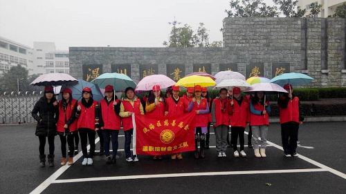 环卫先锋志愿活动是财会系“关爱环卫工人”志愿活动的重要组成部分,旨在协助茶山环卫工人开展街道清扫工作,减轻他们的负担,促进清洁茶山的建设。由于天气问题,志愿者将街道清扫工作改成垃圾清除活动。毛毛细雨为志愿活动带来了诸多不便,但丝毫没有影响大家的公益热情。志愿者一手撑着伞,一手捡拾垃圾;大家分工合作,一部分在左,一部分在右;草坪、街道小巷、停车场,都留下了她们劳动的身影。经过近一个小时的努力,整个街道焕然一新。衣服脏了,但街道净了;身体累了,但心里美了。