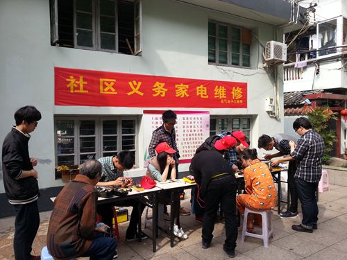 中午志愿者一来到社区,经过社区广播,活动很快有序的开展起来。志愿者们细心地布置好家电维修现场,对拿来的家电进行了详细的登记,志愿者对家电依次编号,并详细的记录每一件家电主人的姓名、联系方式、送来的时间等,志愿者们按序号系统化、区域化、流程化有责任地修理。在活动现场,志愿者们认真地为市民维修家电,积极与市民探讨家电使用过程中可能出现的问题,向市民们提供了很多家电保养的建议。对于在修理电器中遇到不太明的问题时,志愿者们相互交流,相互合作,共同完成。遇到无法修理的电器,他们还是义不容辞的利用自己的专业知识进行深入地专研。在整个过程中,时常遇到一些问题,志愿者们并未因此而对手中的工作有了懈怠,他们工作时不喊苦,不说累,用心专研。最后,保质保量地完成了对洪殿社区义务家电维修的活动,并且赢得了社区居民的普遍赞许。