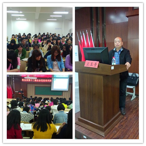 为进一步加强学生党支部建设,鼓励学生积极向党组织靠拢,4月9日晚,财会系第十二期业余党校培训班第五课于崇学楼101教室顺利举行,本次党课特邀学院党委委员、副院长兰玉景老师授课。