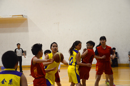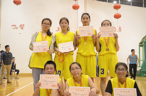财会女篮和成教女篮是本届女篮联赛中表现最突出的两支队伍,也是最有希望展开冠军角逐的两支队伍。随着裁判员的一声哨响,比赛正式拉开。财会女篮身着金黄色球服,队员们按照教练的部署,沉稳地投入比赛。6号张欢欢是队长,她跑位好、速度快,其快速突破往往使对方束手无策;担任中锋角色的4号胡晓恩身高优势明显、技术全面、投篮准确,屡屡突进对方篮下投球得分,并摘得多个前后场篮板;12号徐黎和10号楼斌化步伐好、控球稳、身体素质好,多次助攻队友得分; 3号高苗苗控球好、速度快、反应敏捷,多次快速突破得分,并且在手指受伤的情况下依然坚持打满全场,这是对自己的挑战、对团队的信任、对冠军的渴望,也是对财会女篮精神的完美诠释;蔡梦雅、董立约两位队员时刻为队友们提供支持。经过近一个小时的激烈对抗,财会女篮最后战胜成教女篮,顺利蝉联学院女篮联赛冠军。财会系拉拉队也是满怀激情,用热烈的呐喊声为队员们鼓劲,一直陪伴队员们到最后。