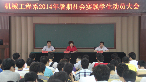 开展以“三进一留”为主题的大学生暑期社会实践活动已经成为我院近年来重点工作之一,我院机械工程系一直以来非常重视该项工作,把此也作为提高人才培养质量的重要举措。近日,机械系2014年暑期社会实践筹备工作如火如荼地铺展开展,分别分五批召开了教师、学生动员大会,把活动推到实质性地部署阶段。