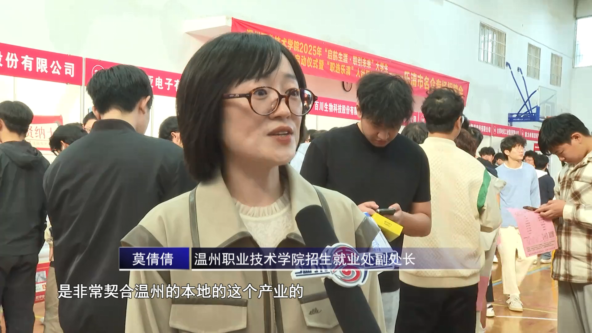 温州职业技术学院招生就业处副处长 莫倩倩:因为我们学校的专业是非常契合温州的本地的这个产业的,所以温州的很多的企业对我们的学生都非常地喜欢。(这次)也是我们学校第一次通过人社局长进校园这样的一个活动来推进我们的就业工作。像政府机构他们的这个牵线搭桥,把更高质量的企业引到我们学校,把他们请进来,让我们的学生能够直接跟这些上市公司,还有一些专精特新“小巨人”企业,能够真正对接上,我们也想通过这个活动让学生能够尽快地去找到自己心仪的岗位。