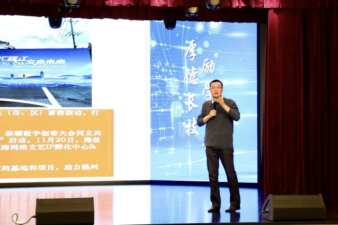 谷川书记在讲话中指出,文化“新三样”正以强劲的势头成为文化产业高质量发展的新引擎,团市委联合市网络作家协会,联动十余家优质企业和各在温高校团委,共同发起“温青创艺”人才培养计划,旨在让更多在温高校的青年学子,成为温州文化“新三样”出海的生力军。最后,谷川书记宣布“温青创艺”在温高校文化“新三样”人才培养计划正式启动,标志着温州文化“新三样”人才培育工作正式拉开序幕。