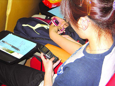 在昨天的互助会上,学生通过短信,向在台上的心理老师说出自己的心理困惑。 郑海华/摄