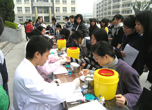 刚过中午12点半,温职院电子专业大二学生吕晓红就与同学相约来到学校广场,参与无偿献血活动。因为活动正式开始时间为下午1点整,本以为能算得上“积极分子”的她,没想到已落在不少同学的后头。“献血能加速新陈代谢,对自身有益,更重要的是能帮助有需要的人。”第一次献血的吕晓红虽然有点害怕,但话语中却透着坚定。在献血队伍中,记者看到有不少学生是手持献血证而来的,但更多的是首次加入献血志愿者队伍的“新鲜血液”。