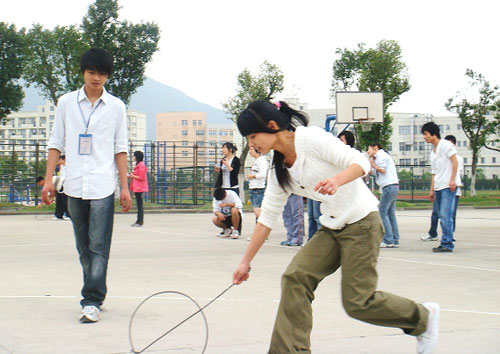 据悉,滚铁环运动是温州职业技术学院以“传承民族文化,激扬奥运精神”为主题的民俗运动会的项目之一。该院的民俗体育运动会已经连续举办了三年,许多几乎已经“绝迹”的民俗运动项目重返校园。“奥运点燃了很多人的运动激情,我们在奥运来临之际在校园中开办民俗运动会,也是为了让大学生们用简单、新鲜的运动来快乐地迎奥运。”工商系党总支书记蔡后界如是说。
