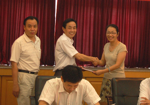 王向红副院长首先代表学院向专业指导委员会的各位委员表示了热烈欢迎和衷心感谢。王副院长说,新一届电气电子类专业指导委员会的成立对完善专业建设,深化电气电子类专业教学改革,具有深远的意义。她希望专业指导委员会的专家、教授们能为我院电气信息类专业的发展献计献策。随后,王向红副院长向各位专家、教授颁发聘书并合影留念。浙江大学电气工程学院副院长赵光宙教授,浙江大学航天电气与微特电机研究所所长叶云岳教授,湖南工程学院电气系副主任黄绍平教授,浙江省电气行业协会常务副会长胡里本先生,温州市电子信息行业协会会长王念荪高级工程师等20多名业内专家、学者成为我院电气专业指导委员会委员。
