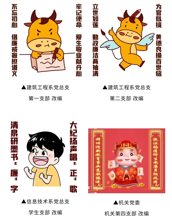 小年夜,学校官微将纪委精选出的廉洁对联制作成不同风格的廉联表情包推送给全体师生,分原创篇、改编篇、摘录篇,共30个生动有趣的表情。“学校每年都会在元旦、春节等重要时间节点进行纪律提醒和廉政教育,今年推出廉联表情包,以广大师生喜闻乐见的方式宣传廉政文化,是创新严肃话题表达方式的尝试。师生在利用廉联表情包交流中进行相互廉洁提醒,在节日问候中潜移默化地传递廉洁理念,在轻松活泼中培育节日清风正气。” 学校纪委相关负责人介绍。
